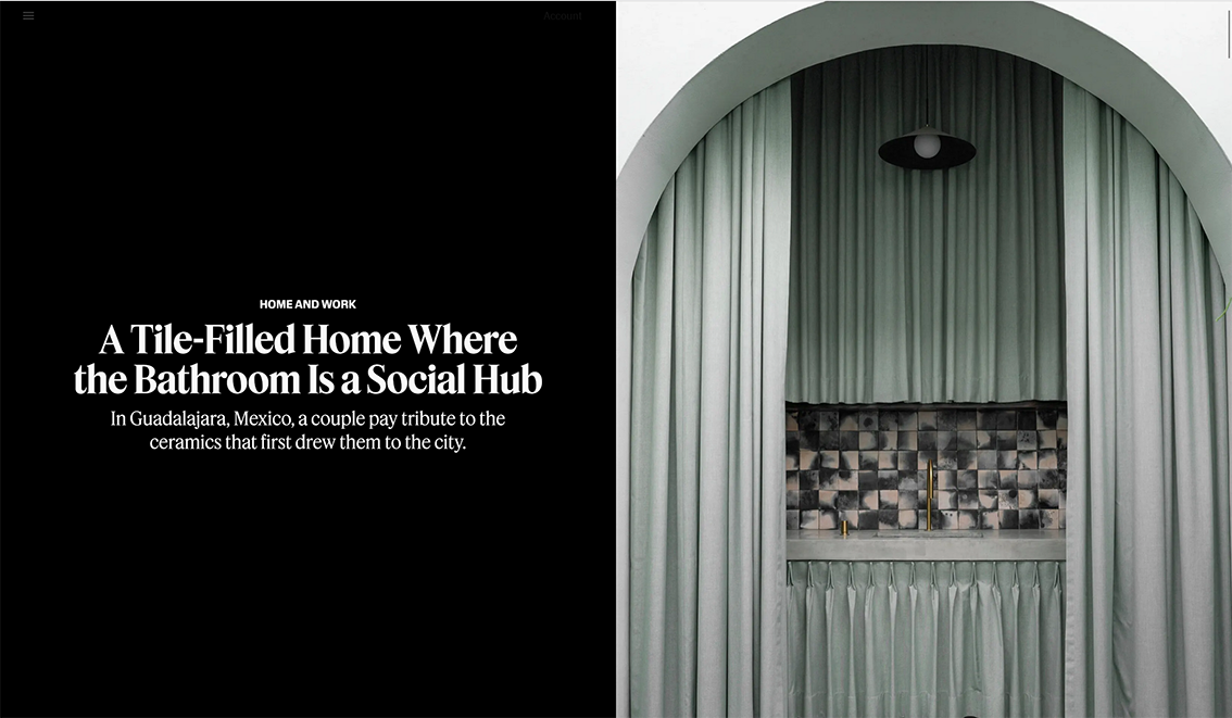 Casa Remedios has been featured in The New York Times T Magazine. The article highlights the local and artistic collaborations that shaped the project, showcasing the work of talented designers and makers from Guadalajara. It also explores the home’s guiding design principles—preservation, adaptive reuse, the use of natural light, and the organization of spaces around courtyards.